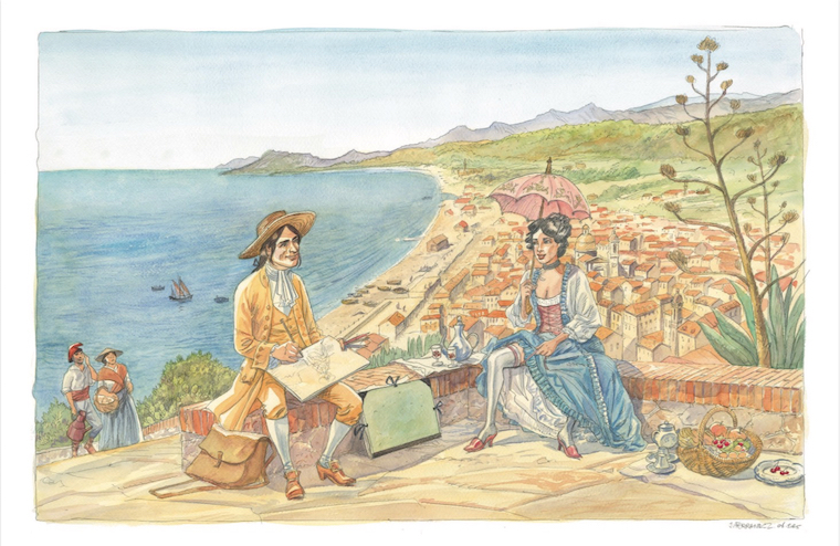 ferrandez lascaris sqORIENTS PERDUS - Tous les Niçois connaissent le Palais Lascaris, célèbre musée de la vieille ville mais qui connaît l’histoire d’un des membres de cette grande famille - Jules dit Théodore - qui s’embarqua pour Malte pour fuir les bouleversements de la révolution. Puis à l’arrivée du général Bonaparte sur l’île en 1798, choisit de le suivre et participer à l’expédition d’Égypte au côté de son armée d’Orient et ses plus illustres savants. Le chevalier Lascaris, descendant des Empereurs de Byzance, s’adonne à la musique, au dessin et à la peinture et devient agent secret de Napoléon.Ce personnage éminemment romanesque a inspiré l’auteur des Carnets d’Orient qui lui consacre une bande dessinée en deux tomes, une biographie romancée qui mêle la petite et la grande histoire. On retrouve dans l’album le même goût pour l’Orient du dessinateur niçois né à Alger. Il réalise de superbes aquarelles que les visiteurs pourront admirer sur les cimaises du Palais Lascaris.
