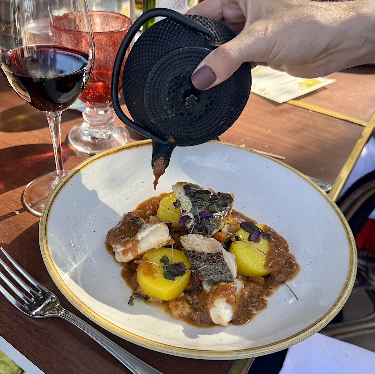 RESTAURANT DOLCE PROVENZA - L’été n’a pas dit son dernier mot dans les sublimes jardins aux essences provençales du Domaine du Mas de Pierre. Sous la chaleur du soleil, hélichrise, romarin, lavande, sauge embaument l’air et éveillent nos sens gourmands. Les belles journées d’octobre offrent l’occasion de déjeuner sur la terrasse du Dolce Provenza qui surplombe la piscine. Le chef Rodolphe Loury y signe une carte bistrot qui renoue avec les recettes traditionnelles mâtinées d’accents sudistes ou Italiens. Ainsi, en entrée, on se laisse tenter par une Burratta des Pouilles, figues de Provence, tomates d’antan et pesto sauvage, comme une synthèse de ce que l’arrière-saison offre de plus éclatant : tomates gorgées de soleil en dégradé de couleurs, figues aux saveurs de miel et la douceur crémeuse de la burratta. L‘œuf en meurette s’émancipe de sa Bourgogne natale pour se griser de parfums du sud et le pâté en croûte Richelieu se parsème de chapelure de pistaches de Sicile et chaperonne quelques légumes de saison crus et cuits. Un homard, à peine saisi, joue la fraîcheur avec sa cohorte de légumes croquants et sa sauce cocktail.