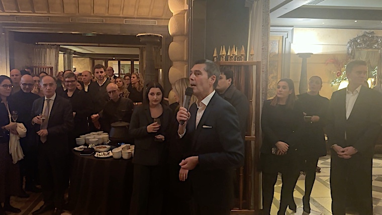 Serge Ethuin, le directeur général de l’hôtel, prit la parole pour présenter les nouveautés et faire un retour sur une année riche en événements. Il commença par remercier les invités d’avoir apprécié le restaurant estival italien Zia et d’avoir plébiscité son retour et il annonça que celui-ci reviendrait en 2026 et 2027 pour une plus longue période qui commencerait dès la mi-avril. Il revint sur la grande nouveauté de l’année : l’ouverture du Spa Métropole by Guerlain. La maison de parfum et de beauté a aussi servi d’inspiration au chef pâtissier Patrick Mesiano qui s’est inspiré du célèbre flacon de parfum au moment d’imaginer sa bûche de Noël 2025. L’autre grande nouveauté était l’annonce que 45% des chambres et suites de l’hôtel avaient bénéficié d’une totale rénovation. Il revint ensuite sur les fêtes à venir en commençant par annoncer, en guise de tea time, le Chocolate time avec sa merveilleuse fondue au chocolat ainsi qu’une collection de douceurs et pâtisseries autour du chocolat : la tarte chocolat soufflée, le marbré, le flan chocolat « Caraïbe », la brioche cappuccino ou le choco milk punch... Enfin, se tournant vers le chef Christophe Cussac, il rappela le dîner spécial truffe blanche noire du 4 décembre, imaginé comme un avant-goût des somptueux menus de Noël et de fin d’année dessinés par le chef étoilé. L’ambiance magique et gourmande nous avait précipités avec quelques semaines d’avance dans la magie de Noël, il fallait maintenant apprendre la patience en commençant le compte à rebours qui nous conduirait à Noël.