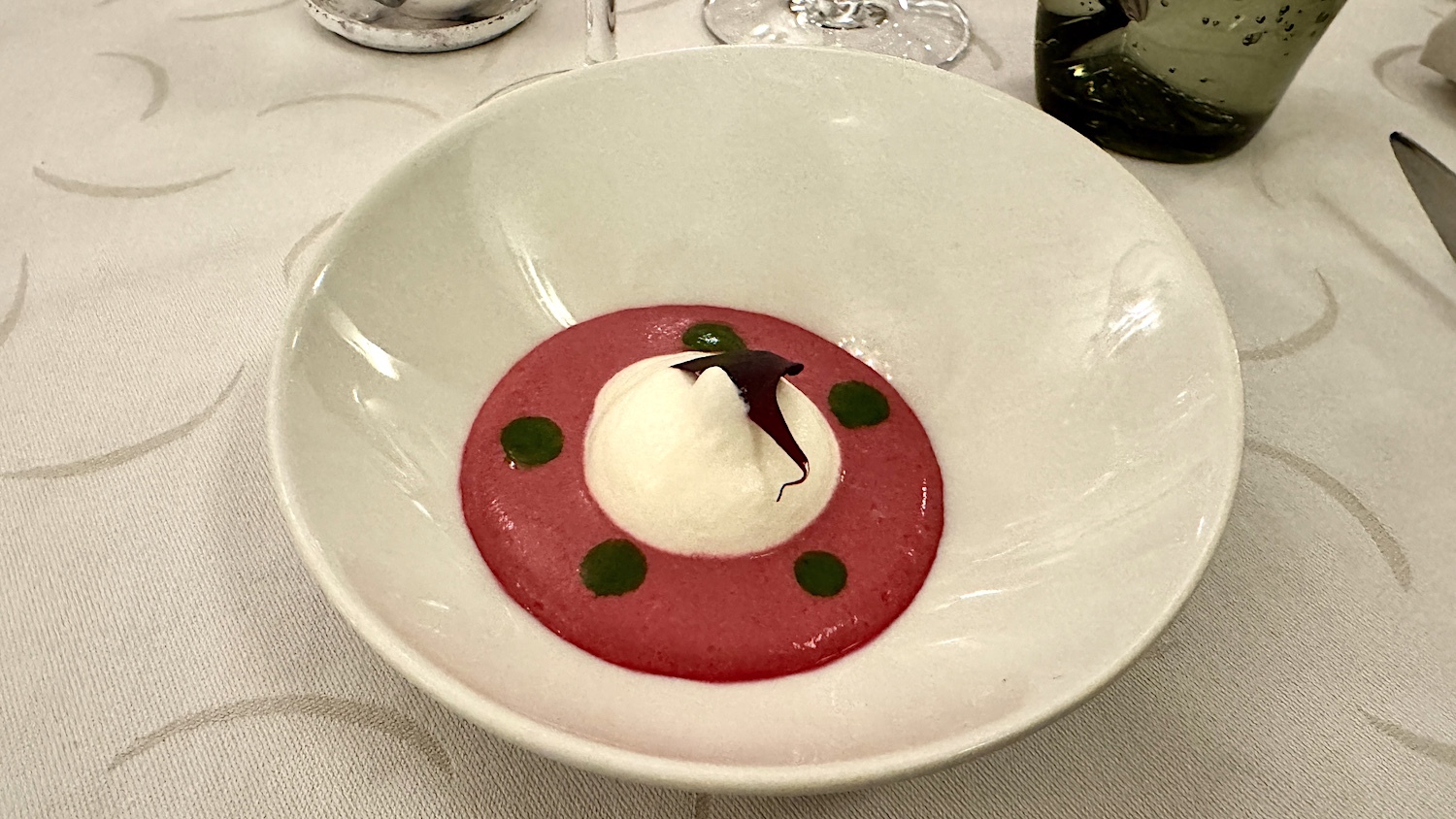 Gaspacho de betterave, Espuma de chèvre frais.