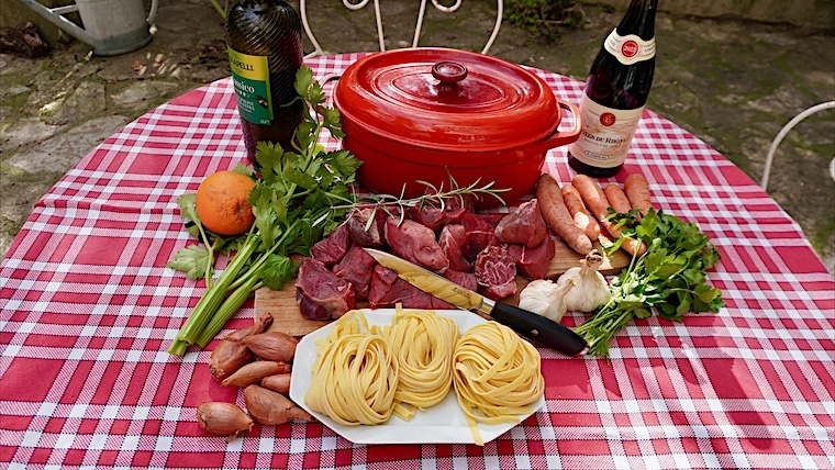 La première étape consiste à demander à son boucher de couper en gros dés de la viande à braiser (paleron, gîte, joue de bœuf). Ensuite, on prépare la marinade dans laquelle on dépose la viande. Une fois, la daube dans la cocotte, il convient de la faire mijoter longuement à petit feu en surveillant qu'elle n'attache pas au fond. Toute la cuisine embaume et se répand alentour, aiguisant les papilles. Le dimanche matin, on prépare les pâtes fraïches et le midi toute la famille se pourlèche les babines.