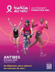 Le Triathlon des Roses, événement solidaire et sportif emblématique de la Fondation ARC, est co-organisée avec le club Antibes Triathlon et en partenariat avec la mairie d’Antibes Juan-les-Pins dans le cadre d’Octobre Rose, cette course vise à battre le record des 675 000 € collectés en 2024 au profit de la recherche sur les cancers du sein, qui touchent encore 1 femme sur 8 en France. Ouvert dès 12 ans, le Triathlon des Roses d’Antibes peut se courir en individuel (réservé aux femmes) ou en relais (2 ou 3 personnes, équipes mixtes possibles, épreuve vélo réservée aux femmes).