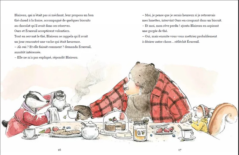 LAROUSSE JEUNESSE - Quand Ours part à la recherche de ses lunettes qu’il a égarées, il manque de marcher sur mademoiselle Écureuil qui cherche tout autre chose, elle cherche... Le Bonheur. Ensemble, ils vont continuer leurs recherches et rencontrer, tour à tour, Blaireau qui est à la recherche de ses rêves puis Loup qui cherche ses clés. Mademoiselle Écureuil poursuivra son voyage et sa quête du bonheur loin de ses amis. Trouvera-t-elle le bonheur ? Que racontera-t-elle à ses amis à son retour ?