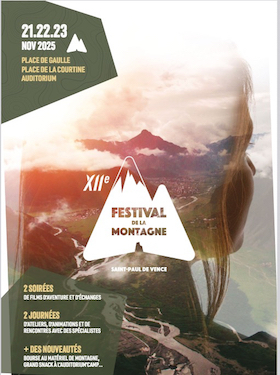 La 12e édition du Festival de la Montagne débarque les 21, 22 et 23 novembre 2025 à Saint Paul de Vence.