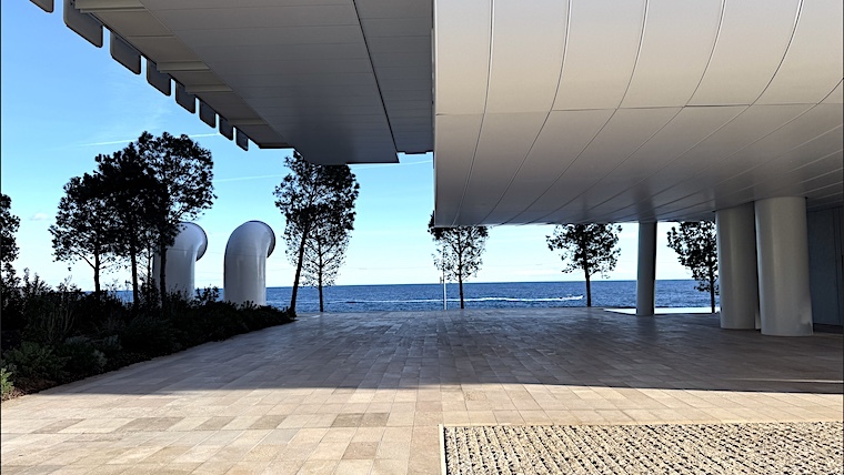 Légende de la photo du haut : vue sur la Méditerranée prise depuis le nouveau quartier Mareterra, en grande partie piéton où cohabitent un parc luxuriant, un petit port, une esplanade de plain-pied sur la mer, un parking souterrain.