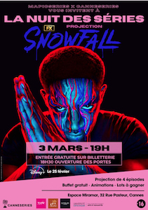 Dédié à la découverte de nouvelles séries et au rassemblement des publics autour du cinéma et de la création sérielle, cet événement gratuit, porté par MAPICSERIES, s’adresse à tous les passionnés de séries, en particulier les étudiants. Il a pour objectif de créer une soirée festive et culturelle en proposant une expérience collective et immersive autour de la série SNOWFALL (diffusée à partir du 25 février sur Disney+).
