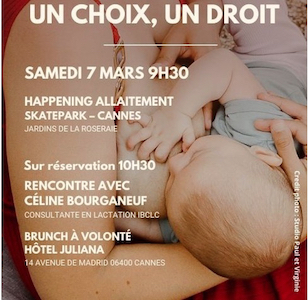 L’évènement se prolongera par un brunch thématique autour de l’allaitement à l’hôtel Juliana pour un moment d’échange privilégié avec une invitée de marque, Céline Bourganeuf, infirmière- puéricultrice et présidente de l’Association Française des Consultantes en Lactation (AFCL)