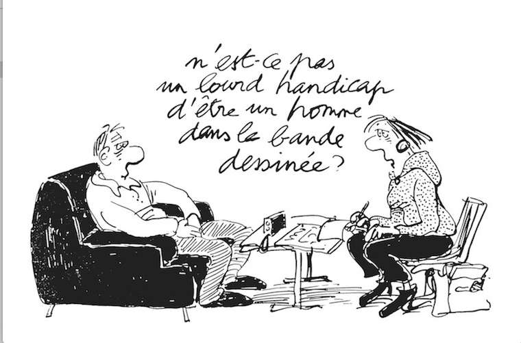 Légende de la photo du haut : dessin de Claire Bretécher. Née le 17 avril 1940 à Nantes, Claire Bretécher est décédée en février dernier à l’âge de 79 ans. Elle a ouvert la voie de la BD aux femmes, lit-on souvent. Elle était surtout excellente, drôle et cruelle.