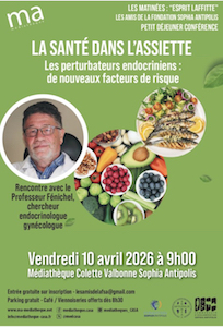 Patrick Fénichel, chercheur, endocrinologue et gynécologue, Professeur émérite de l’université Côte d’Azur - Ex-chef du service d’Endocrinologie, Gynécologie et Reproduction/CHU de Nice. Ex-directeur d’équipe ou d’unité INSERM (Centre Méditerranéen de Médecine Moléculaire C3M/INSERM). Initiateur et coresponsable du Diplôme Inter-universitaire Santé et Environnement Universités Nice Côte d’Azur et Montpellier, nous informera sur l'influence des perturbateurs endocriniens, éventuellement présents dans nos assiettes, et qui impactent notre santé.