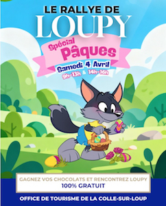 À l’occasion de Pâques, partez à l’aventure en famille dans les rues de La Colle-sur-Loup avec Loupy ! Cette chasse au trésor ludique vous invite à (re)découvrir le village autrement : énigmes à résoudre, indices à dénicher… et à la clé, de délicieux chocolats de Pâques. Petits et grands sont attendus pour relever le défi aux côtés de Loupy, notre mascotte espiègle qui connaît chaque recoin du village et adore partager ses aventures.