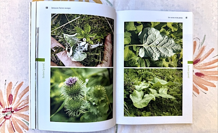 De l’acore odorant au topinambour, l’auteur établit pour chaque plante une fiche d’identité avec une rubrique historique, une autre relate ses expériences vécues, un encart en lettres rouges avise sur les risques de confusion avec d’autres plantes toxiques, puis vient une description botanique avec son habitat et son statut écologique et des photos en couleur pour permettre de l’identifier.