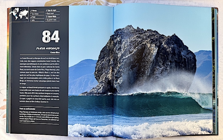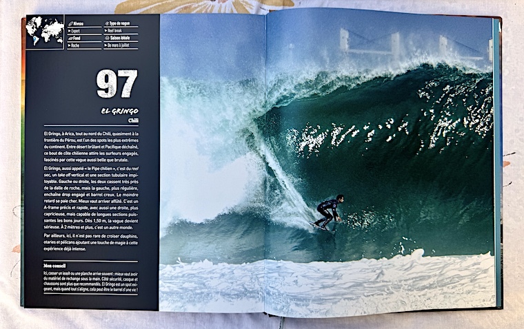 Le livre est également un guide pratique qui, pour chaque spot, indique le niveau de difficulté, le type de vague, la saisonnalité, suit une description du lieu et des spécificités de la vague avec des mises en garde très précises en fonction du site.